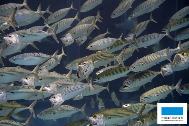 「黒潮の海」大水槽ではグルクマの大きな群れを展示しています。グルクマは「ジンベエザメ」や「マンタ」と同じくプランクトンなどの小さなエサを食べます。水中に漂うエサをこしとって食べるため、大きく口を開けながら泳ぐ面白い魚です!ちなみにこのようなエサの食べ方を濾過採食(ろかさいしょく)といいます(‘Д’)