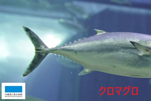 水槽内でコシナガを見つけることはかなり難しいですが、尾がスマートなマグロを探せば見分けることが出来ます!