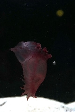 水深300-6000mに生息し、クラゲナマコ科に属する。大きさは20㎝程度。