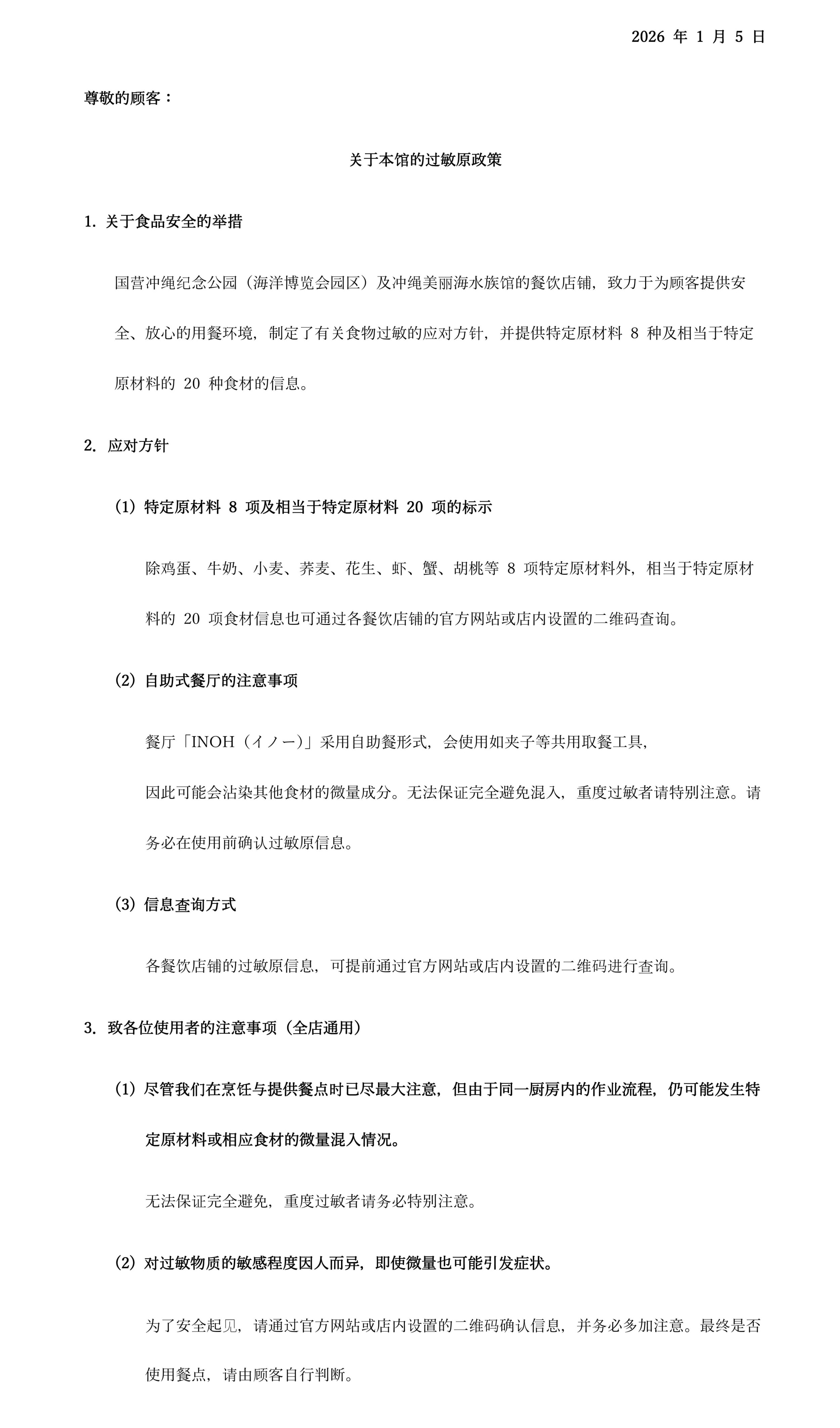关于本馆的过敏原政策