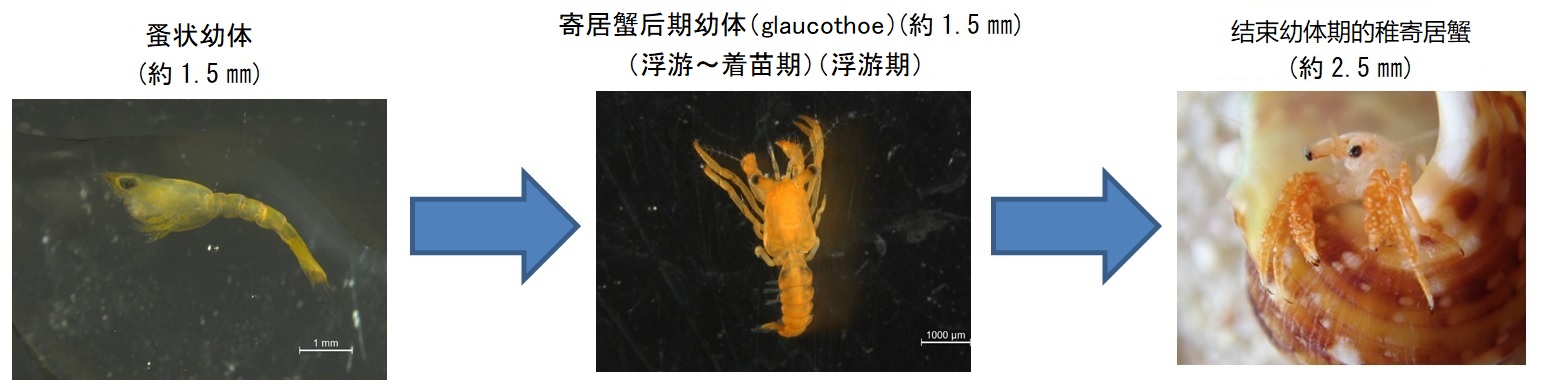 成体3个体(甲壳长约30毫米),稚寄居蟹3个体(甲长约2.5毫米)