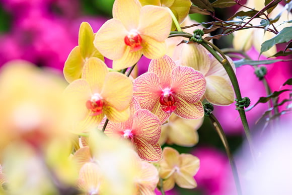 熱帯・亜熱帯の花や果樹を集めた植物園で常時2,000株以上のランを展示しています。園内を一望できる遠見台や、ビクトリア温室ではアロワナ、ピラルクなども観察できます。館内の展示を解説する音声ガイド(PDA)の貸し出しや、珍しい植物について紹介するフラワーガイドツアーも毎日開催しています。沖縄美ら海水族館の年間パスポート提示で半額でご覧いただけます。
