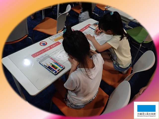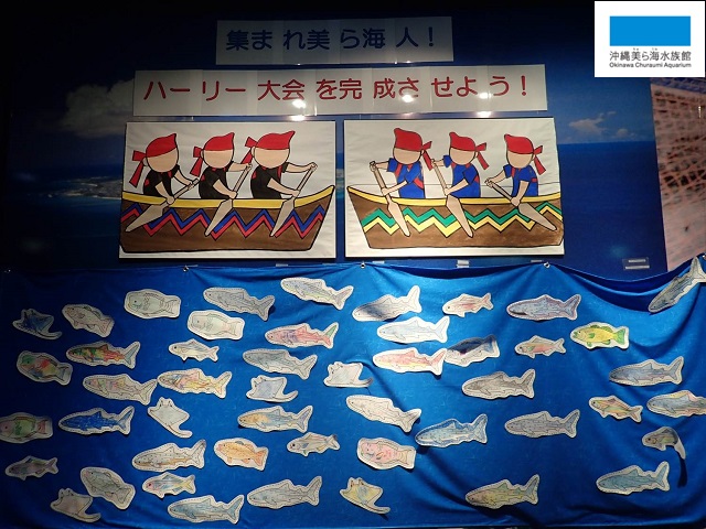 GW特別工作教室は5月6日(月)で終了となりますが、作って頂いた美ら海ハーリー大会の巨大タペストリーは5月末まで「わくわくアクアラボ」付近で展示いたします。