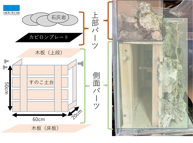 私はこれまで、クロイワトカゲモドキを山中の斜面や、石垣を含む琉球石灰岩の多い岩場で観察してきました。そこで、レイアウトの構想段階で石垣はぜひ作りたいなあ…と思っていました。