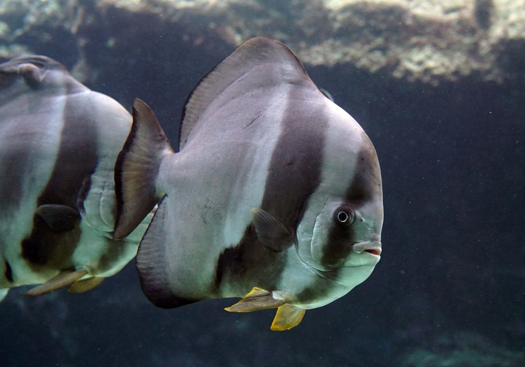 サンゴ礁に生息し、トランプのスペードを横にしたような形の魚。幼魚と成魚では姿・形が大きく異なり、幼魚は海面を漂う枯れ葉に似せた形で身を守る。