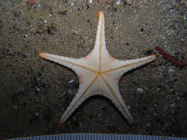 2009年に、沖縄本島北部沖の水深142mから、当館所有のROV(小型の無人潜水艇)を用いて採取した個体が、日本初記録として報告された。本種はこれまで、フィリピン諸島、西オーストラリア、ニューカレドニア島近海域からわずかな標本が知られるのみであり、今回の発見は、本種の本邦における初記録となるばかりでなく、既知分布域の北限を大きく更新することとなった。ゴカクヒトデの名が示す通り、五角形の体を持つ。生時の体色は、反口側において橙桃色を基調とし、腕中部で赤橙色、腕末端部で橙色となる。