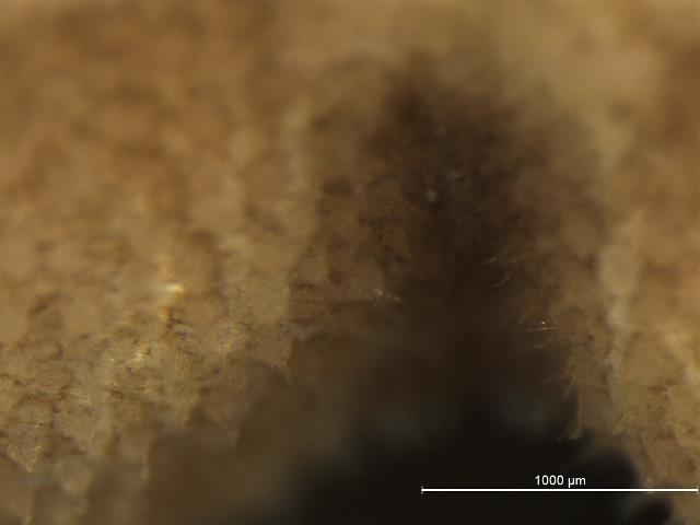 過去に報告された個体は全体的に乳白色の体色をしているが、当館が採集した個体では、盤の中央をのぞき、全体的に褐色をしている。