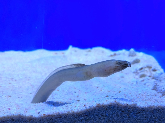 魚類のウミヘビの仲間で、砂地に生息する。細長い体で砂の中に潜り、顔だけを出している。餌を探す時は砂から出て活発に泳ぎ回ることもある。成長すると全長1m程になる。