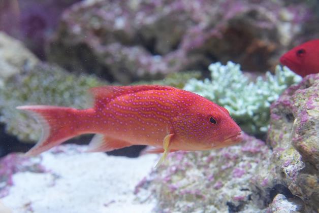 近縁種に「バラハタ」という種がいるが、本種は尾ビレの後縁が白くなることで区別可能である。