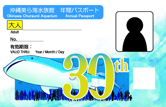ジンベエザメの「ジンタ飼育30年」とミナミバンドウイルカの「オキちゃん飼育50年」を記念したスペシャルデザインの年間パスポートが、好評につき期間限定で再登場!
